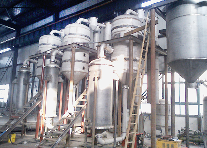 根據(jù)物料的特性及蒸發(fā)量的大小,可設(shè)計成單效或多效蒸發(fā)機組。