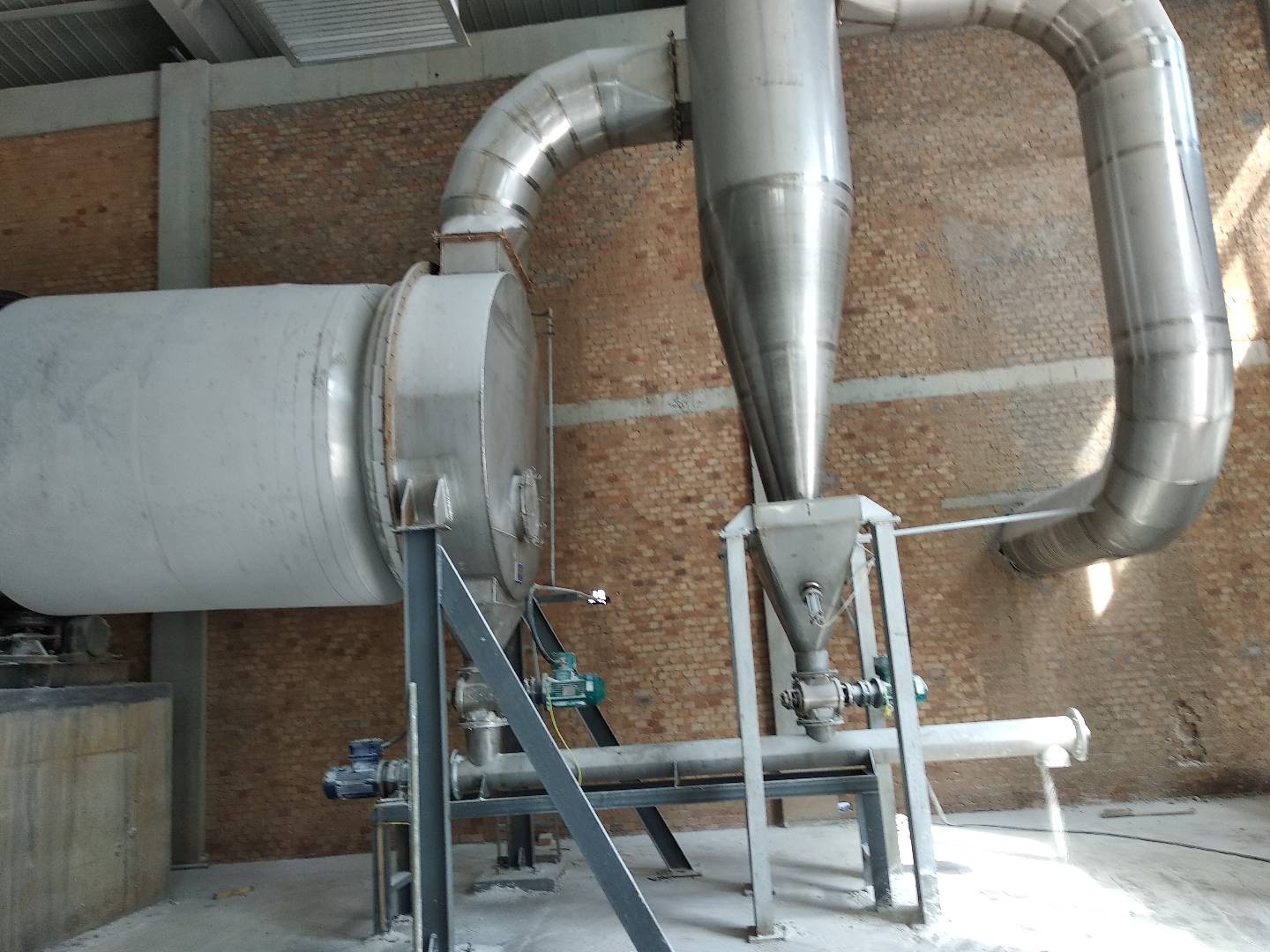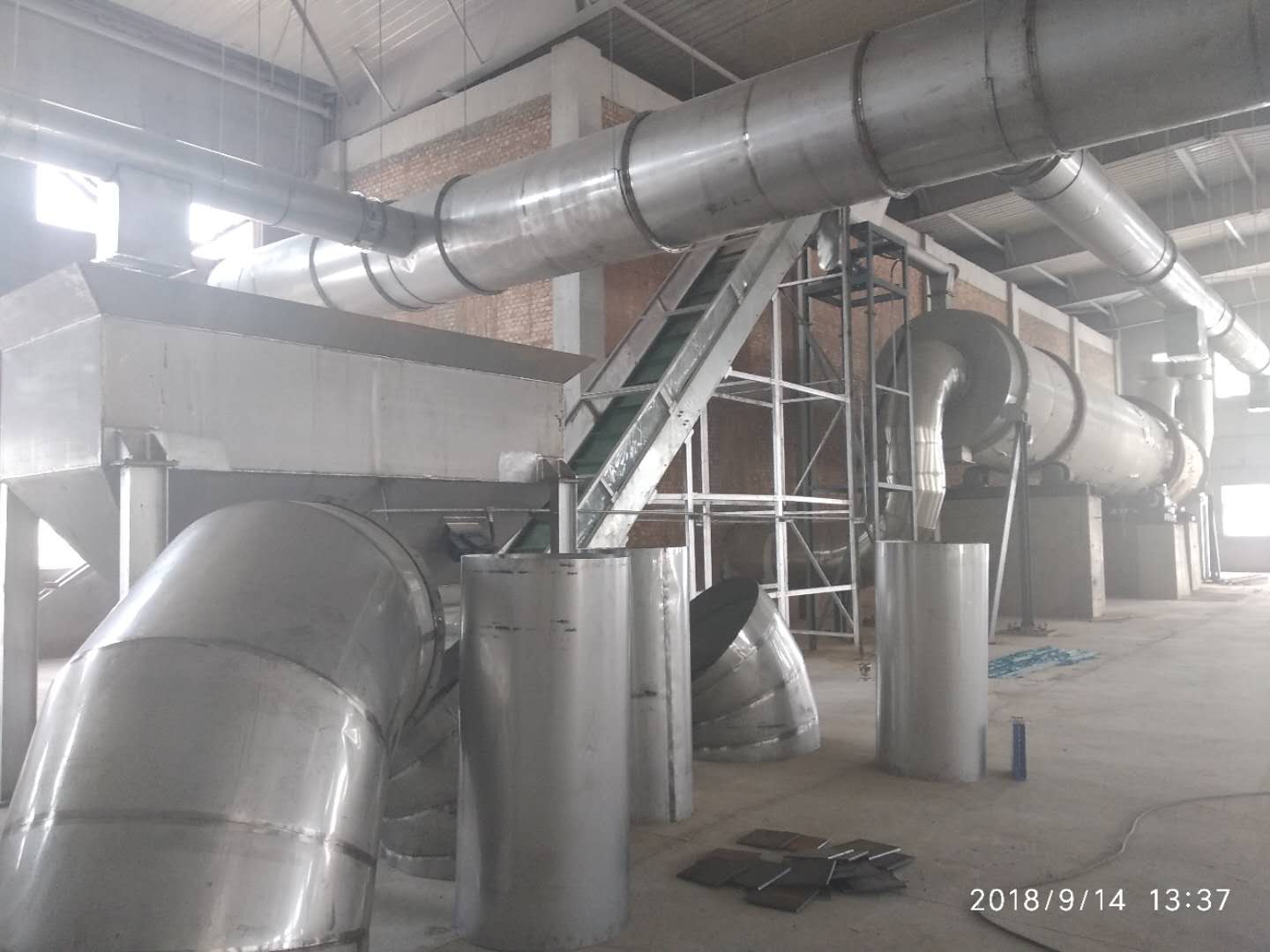 本項目為硫酸鈣熱風爐(回轉窯)干燥系統,初水份為40%(游離水、結晶水),處理量6000kg/h,此項目現在正常生產