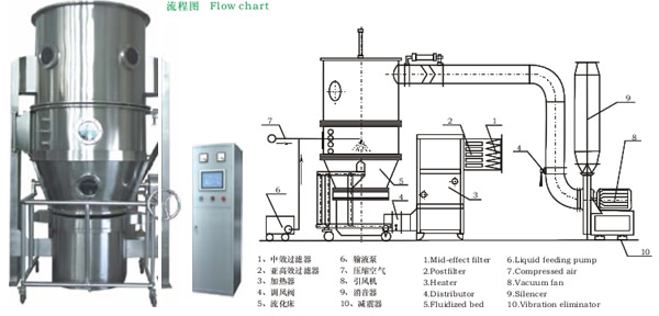藥品造粒及包衣。造粒:壓片顆粒、沖劑顆粒、膠囊用顆粒。包衣:顆粒、丸劑保護(hù)層,備色緩釋、薄膜、腸溶包衣。食品造粒及包衣。炒糖、咖啡、可可粉末、奶油粉末果汁、氨基酸、調(diào)味料、膨化食品。農(nóng)藥、顏料色素、染料造粒。粉狀、顆粒、塊裝物料干燥。