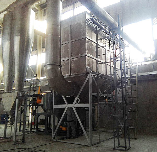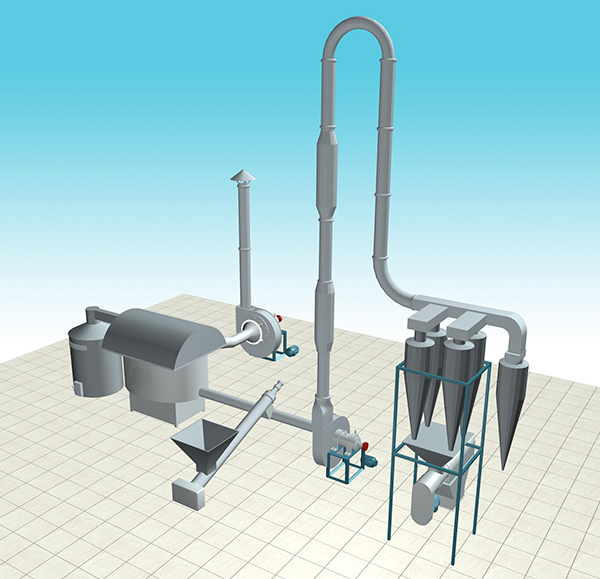 上述這類物料具有特殊性:比重輕,加料難,易燃,易爆。針對此情況,我公司技術(shù)部門開發(fā)研制的新型氣流干燥機(jī),在原氣流干燥機(jī)的基礎(chǔ)上改進(jìn)了加料形式,解決了“架橋”現(xiàn)象。創(chuàng)新改進(jìn)了旋風(fēng)分離器,解決了物料翻滾不出料的現(xiàn)象。系統(tǒng)集成,控制先進(jìn),超溫報(bào)警連鎖關(guān)閉熱源,有效解決了溫度過高引起的燃燒爆炸問題。