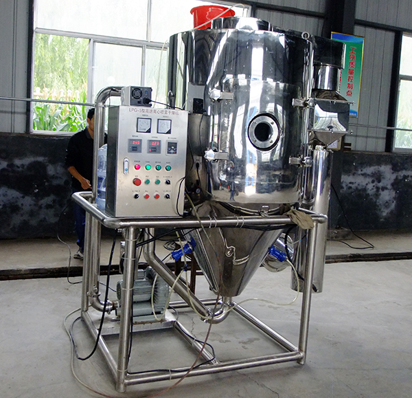 高速離心噴霧干燥機是一種新型高效干燥工藝裝備。它可以使溶液、乳化液、懸浮液、糊狀液等物料,經過噴霧干燥成為干粉狀、細、中顆粒的制品。它速度快、效率高、工序少、省人力。特別對于熱敏性物料可以保持物料的色、香、味。干燥產品質量優良,流動性、溶解性好,純度高、環境衛生。有利于提高產量并獲得良好的經濟效益。在化工、輕工、建材、食品、林產化工、藥物、生化等行業有廣闊的前途。