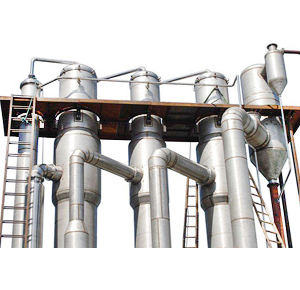 各效蒸發器、各效分離器、冷凝器、循環泵、效間泵、真空及排水系統、分汽缸、操作平臺、電器儀表控制柜及閥門、管路等系統組成。